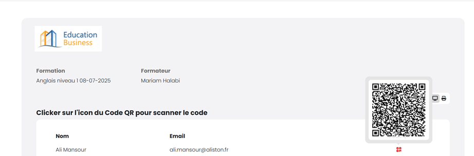 Pour chaque session, un QR code vous est envoyé par votre formateur.