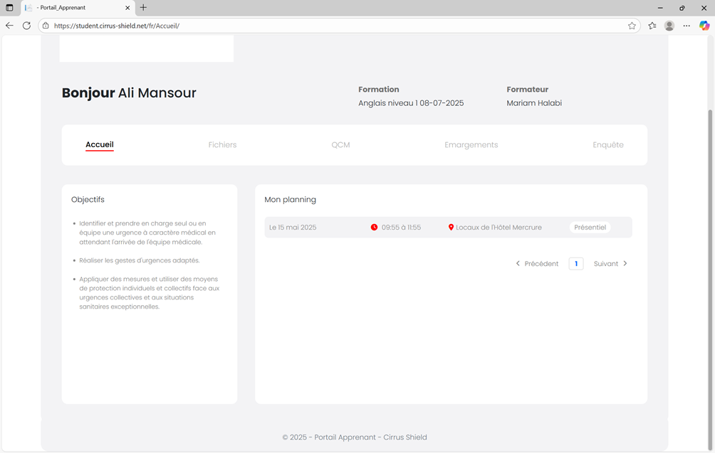Le QR code vous redirige vers le portail apprenant correspondant à votre session.