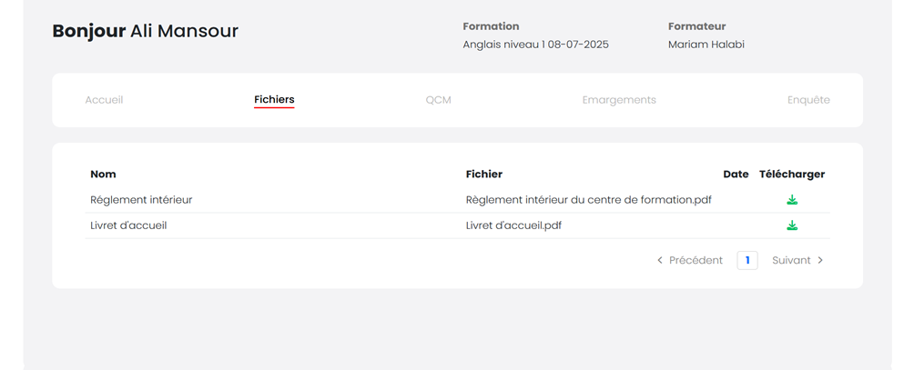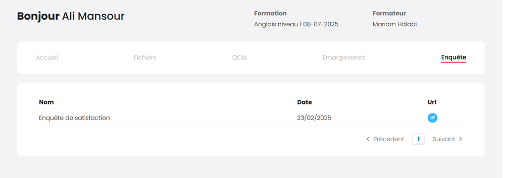 Après certaines sessions, les formateurs peuvent laisser un formulaire de feedback.