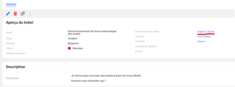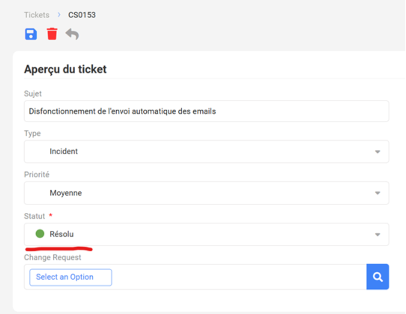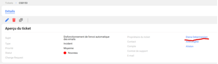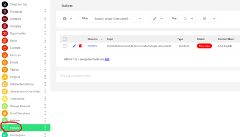 Les tickets soumis apparaissent automatiquement dans l’objet Ticket avec le statut Nouveau.